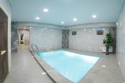 Сауна «Резиденция» в Белгороде готова принять до 18 человек. Всего в заведении два банных зала, большой и малый, каждый со своим бассейном, парной и комнатой отдыха. К услугам посетителей две финские сауны с красивой подсветкой, подогреваемые бассейны, бильярд, уютный зал с телевизором, кожаной мебелью, большим деревянным столом, караоке, Wi-fi. Малый банный зал с парной, комнатой отдыха, душевой и бассейном рассчитан максимум на 14 человек, большой – на 18 человек. Непосредственно в парной может поместиться до 8 (в малом зале) и до 12 человек (в большом зале).
