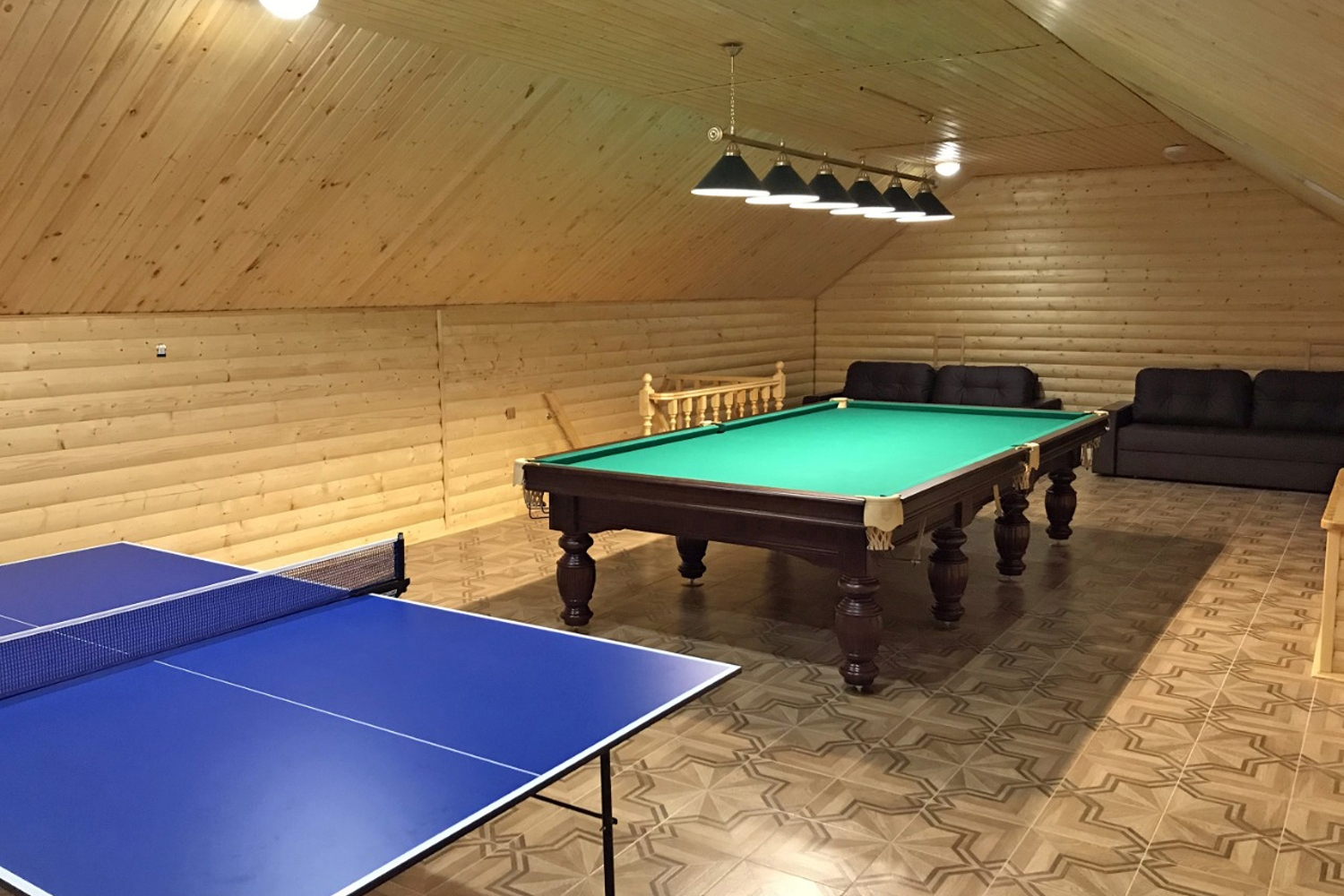 Коттедж, выполненный из натурального дерева, только внешне напоминает деревенский сруб – изнутри баня соответствует самым современным веяниям. Благодаря такой аутентичности создается впечатление исконно русского загородного отдыха, при этом качество сервиса остается на высоком уровне. В русской парной на дровах гостей ждут запаренные березовые и дубовые венички и деревянная кадка с ароматной водой на травах, которую используют, чтобы «поддать парку». Под огромный девятиметровый бассейн с подогревом отведена целая комната, ведь заплывы здесь можно устраивать бесконечно. Когда плавание немного утомит, можно расслабиться под струями гейзерного гидромассажа, воображая себя посреди бурлящего потока горной реки, изображенной на настенном рисунке. А для любителей закаливающих процедур предусмотрена купель с прохладной водой.