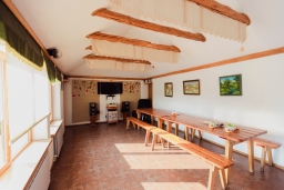 Также в дополнение к хамаму входит большой банкетный зал, с аудио аппаратурой высокого класса Hi-End, телевизор и светомузыка. Этот зал прекрасно подойдет для проведения праздников. Есть кухня со всем необходимым: холодильник, газова плита, посуда. В помещении также находятся совмещенный санузел - душ и туалет.